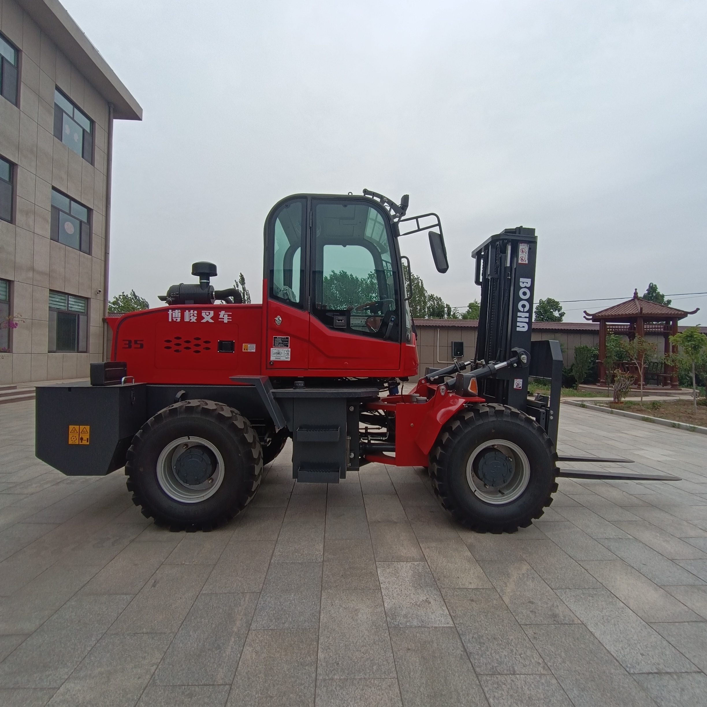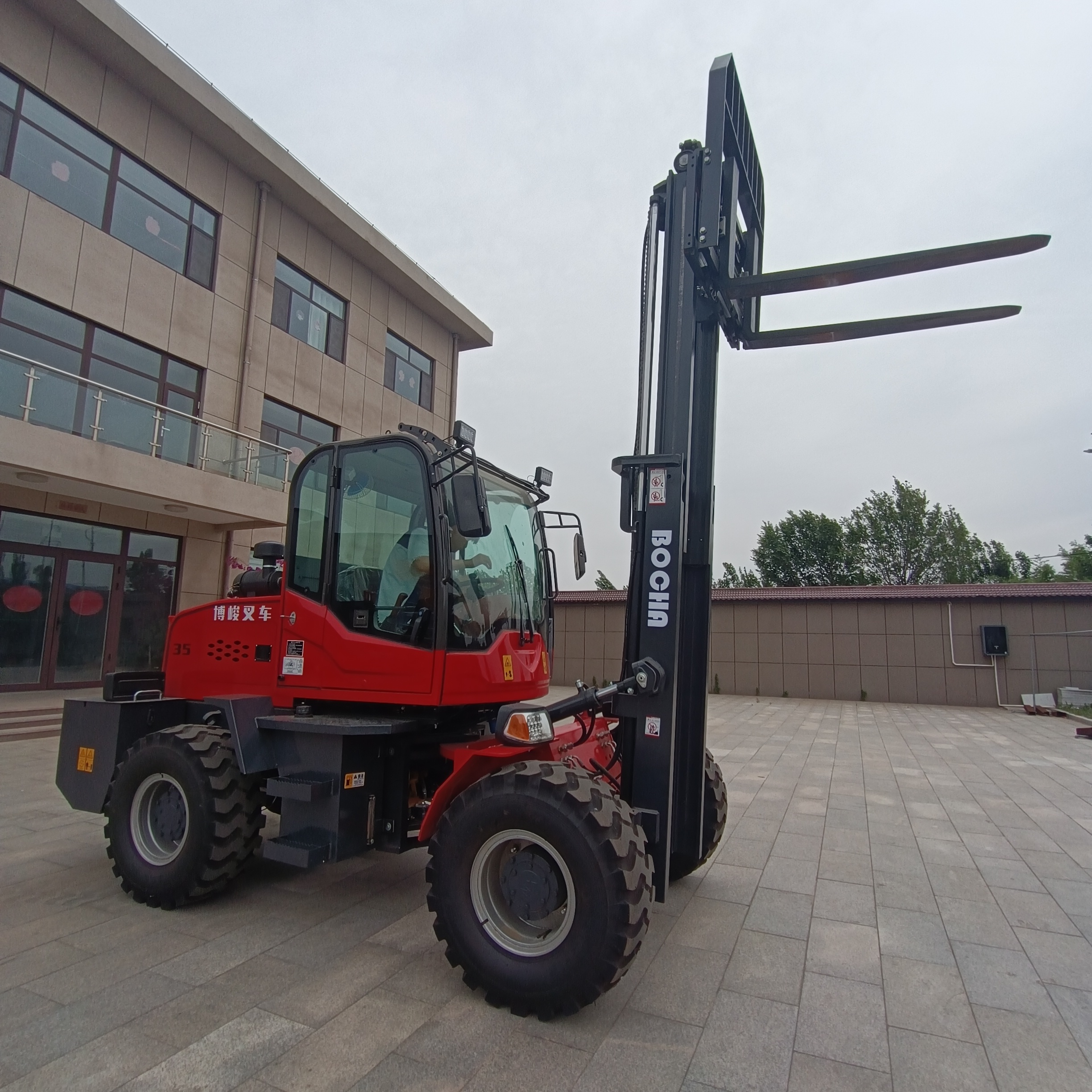 一般市場上的4驅越野叉車,車身很長,大約在3.8-4米 ,轉彎半徑很大,需要的工作場 地空間很大,如果你的工作場地小而窄或是地下室,還有崎嶇不平的坑洼地怎么辦?需要考慮的方面太多啦,真的讓人很糾結。